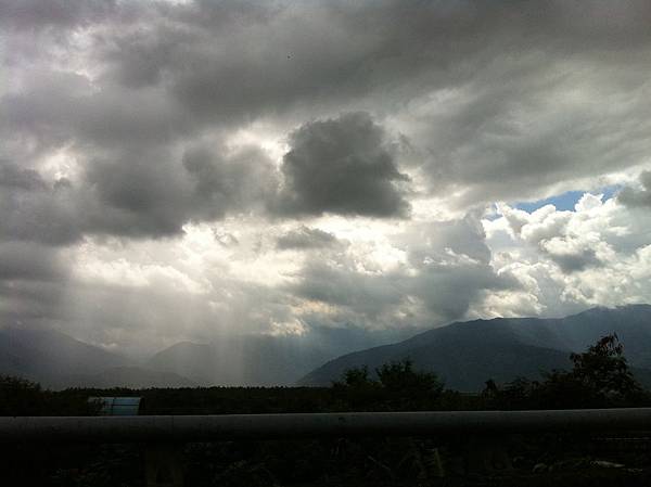 這張是我們剛到富里還沒上山的時候 天很暗 開始下起了大雨.......耶穌光透出來格外明顯、氣派